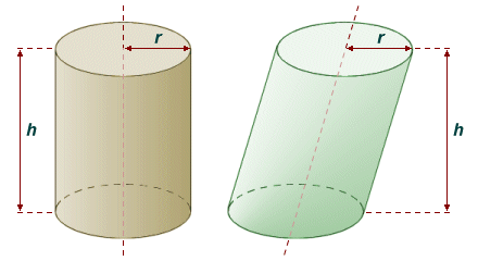 cylinder right solid cylinders bases perpendicular figures line volume area surface oblique whose connects centers mathemania